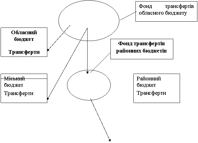 Як зазначалося вище, передбачається наскрізна система трансфертів, за якої трансферти передаватимуться спершу з Держбюджету до обласних бюджетів, а потім з обласних бюджетів до районних бюджетів і бюджетів міст обласного значення, й насамкінець, з районних бюджетів до бюджетів міст районного підпорядкування, сіл та селищ. У цій піраміді трансфертів як обласні бюджети, так і районні бюджети відіграють перерозподільчу роль, і на кожному етапі має застосовуватися певна формула для визначення суми трансферту, яка належить чи то обласним, чи районним бюджетам, і суми трансферту, яка має передаватися далі – бюджетам нижчого рівня у формі трансферту.